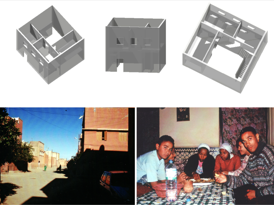 Alleine die Typologie des nordafrikanischen Hofhauses, hier etwa 13 Jahre später um die Jahrtausendwende herum beim Besuch von Familie von Freunden in Marrakesch ist so reichhaltig, dass man bisweilen sich beim Anblick der überregulierten Einförmigkeit des „marktbasierten Städtebaus“ allerorten die Augen reibt. Als Beamtensiedlung in der marokkanischen Metropole veranschaulicht diese verdichtete Hofhausbauweise in der Reihenhaussiedlung zumal auch eine Form von „bezahlbarem Wohnraum“ maghrebinischer Herkunft mit dem innenliegenden Patio.
